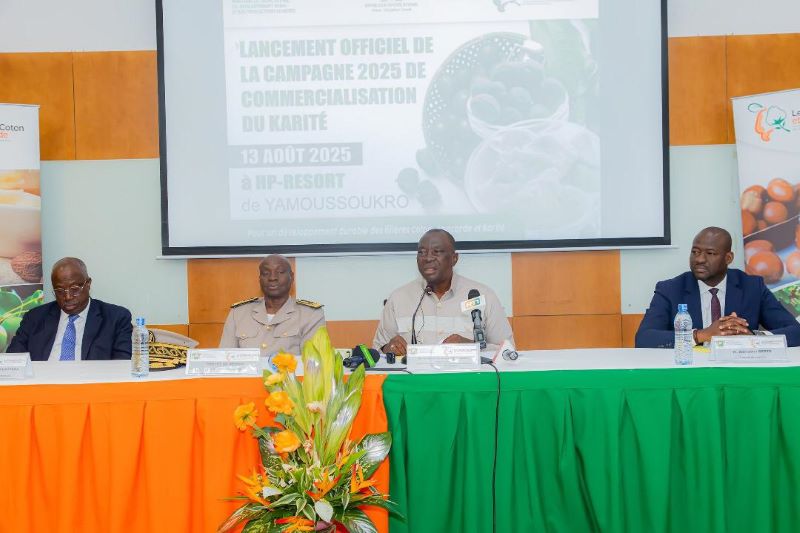 AfrikMonde.com (15-08-2025) Pour l’ouverture de la première campagne de commercialisation de l’amende de karité qui démarre, le prix minimum bord champ est fixé à 250 Fcfa / Kg. L’annonce a été faite par le ministre d’Etat, ministre de l’Agriculture, du Développement rural et des Productions vivrieres, Kobenan Kouassi Adjoumani. C’était le mercredi 13 août 2025, à l’occasion du lancement de la campagne 2025 de commercialisation des produits du karité. Le ministre a affirmé au cours de la cérémonie que la filière Karité représente un enjeu économique et social important pour les communautés rurales, en particulier pour plus de 152 000 femmes qui vivent dans les zones où le karité pousse naturellement. « Pour elles, le karité constitue une source essentielle de revenus et un levier de résilience face à la pauvreté », a-t-il déclaré. Relevant les défis qui ont motivé la professionnalisation de cette nouvelle filière, le ministre a indiqué la prolifération de circuits de commercialisation informels et parfois illicites, l’absence d’un système de traçabilité et de collecte de données fiables, des informations parfois contradictoires. Le ministre a fait savoir que l’État envisage la mise en œuvre d’une stratégie de développement de la filière articulée autour de la structuration et de la professionnalisation des acteurs, de l’organisation de la collecte et du développement de la production, de la transformation locale et de la commercialisation des produits brutes et transformés du karité. « Le fort potentiel du secteur est incontestable, au regard de la demande mondiale de beurre de karité et de produits dérivés qui est en croissance soutenue. Cette demande est portée principalement par les industries cosmétiques, pharmaceutiques et agro-alimentaires », a-t-il soutenu. L’adoption d’un prix minimum bord champ de 250 Fcfa / Kg pour les amandes bien séchées et bien triées permettra, de l’avis du ministre, l’introduction des Reçus d’achat et des fiches de transferts délivrés par le Conseil du coton, de l’anacarde, comme documents uniques de traçabilité des transactions entre les Acheteurs et les Collectrices d’une part et entre les Acheteurs et les Exportateurs et Transformateurs, d’autre part.