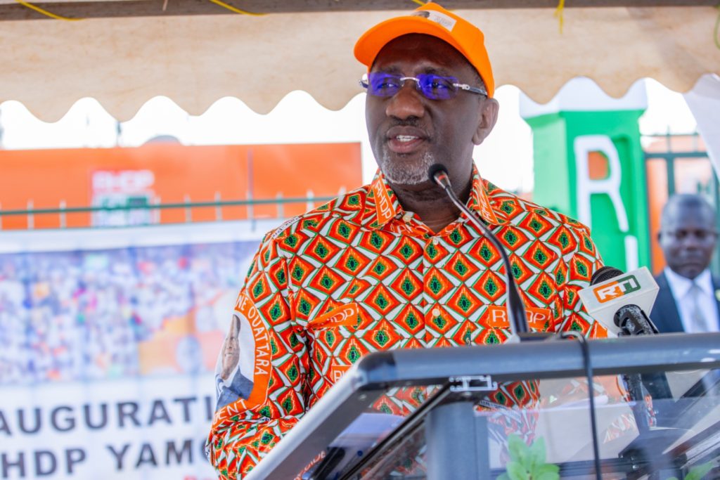 8-10-2025 (AfrikMonde.com) La cérémonie d’inauguration du nouveau siège du RHDP de Yamoussoukro, le dimanche 5 octobre dernier, a servi de cadre au Directeur régional de campagne associé, en charge du District autonome de Yamoussoukro, de lever le voile sur les 47 commandos désignés pour la mise en œuvre de la stratégie sur le terrain, en vue d’assurer une victoire éclatante à SEM. Alassane Ouattara, candidat du RHDP pour l’élection présidentielle du 25 octobre 2025.
